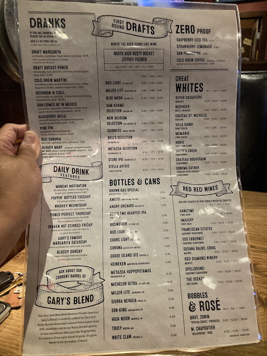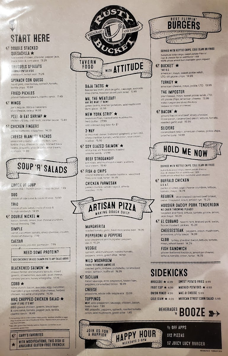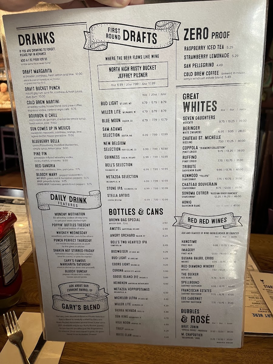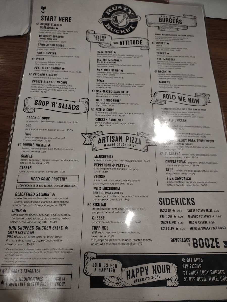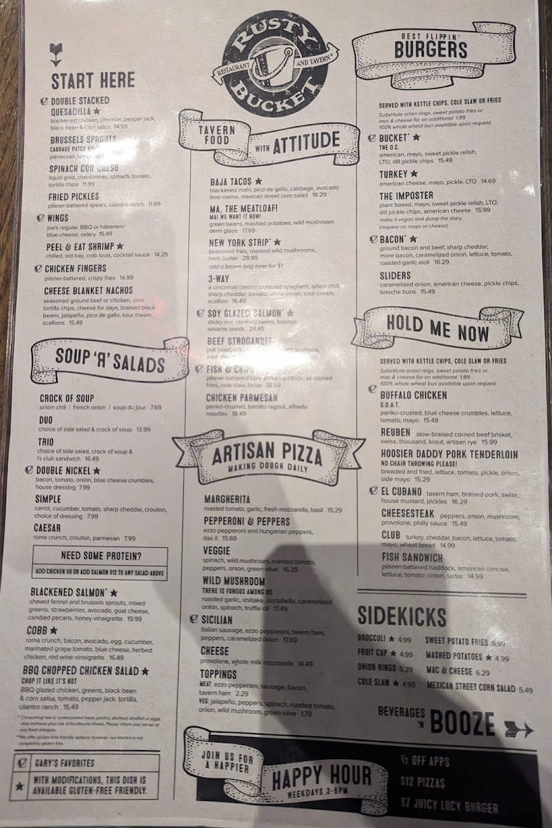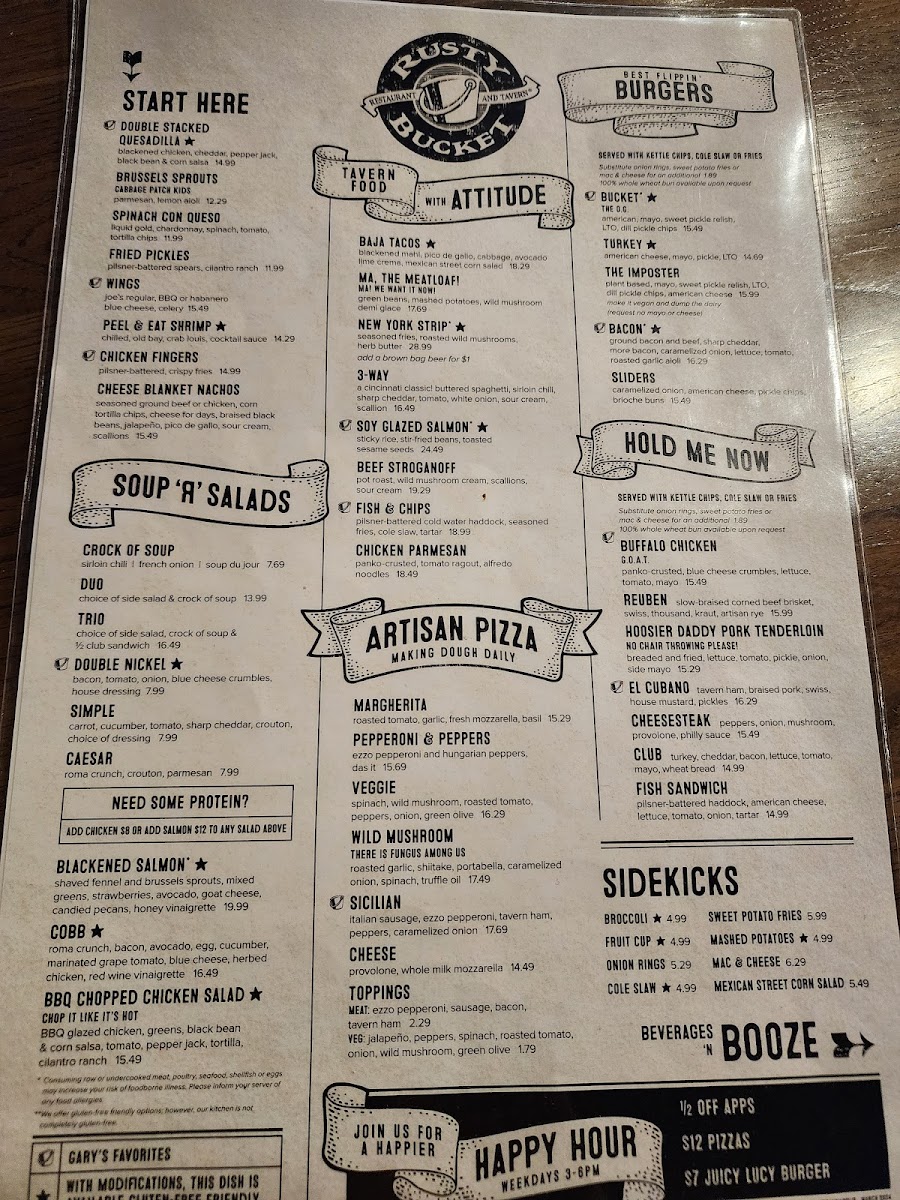 Rusty Bucket Restaurant and Tavern Menu